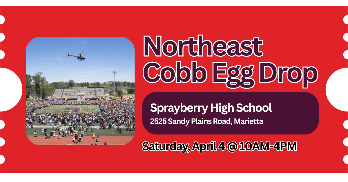 🐣 Northeast Cobb Community Egg Drop — Sprayberry High School, 2525 Sandy Plains Rd, Marietta | 10:00 AM–4:00 PM | Free | More: Event info