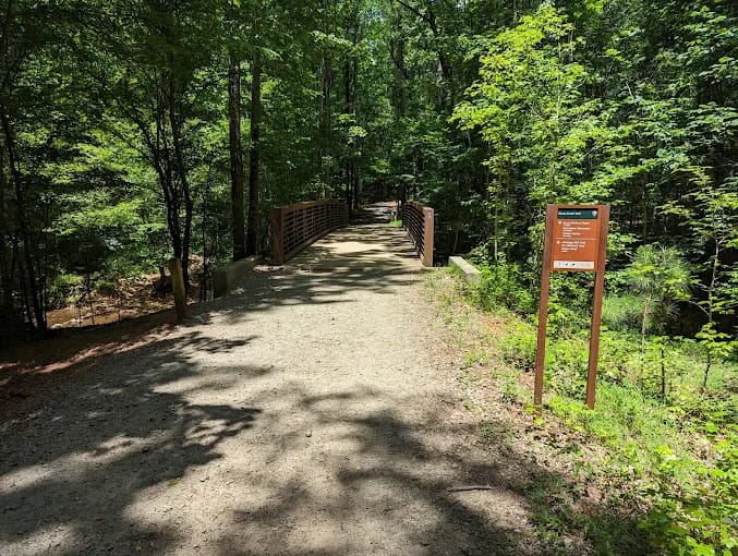 Parking & logistics: Main lot is behind the visitor center and fills by mid-morning on weekends — arrive before 9 AM or use the Burnt Hickory Road or Cheatham Hill lots for a less-crowded entry point. Annual pass is $40 if you end up going more than a few times. Restrooms at the visitor center (open 8:30 AM–5 PM). Water fountains along the trails every few miles. Dogs welcome on a leash (6 ft max). Strollers work on the paved road but not the dirt trails.